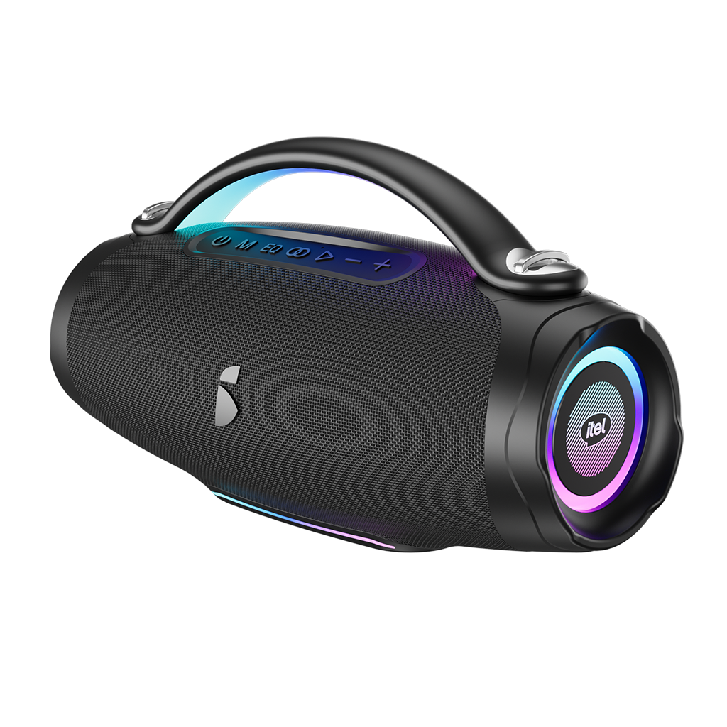 The itel IBS-80 Bluetooth Speaker is perfect for parties, outdoor gatherings, and events, combining powerful sound, vibrant lighting, and long battery life in a stylish black design.