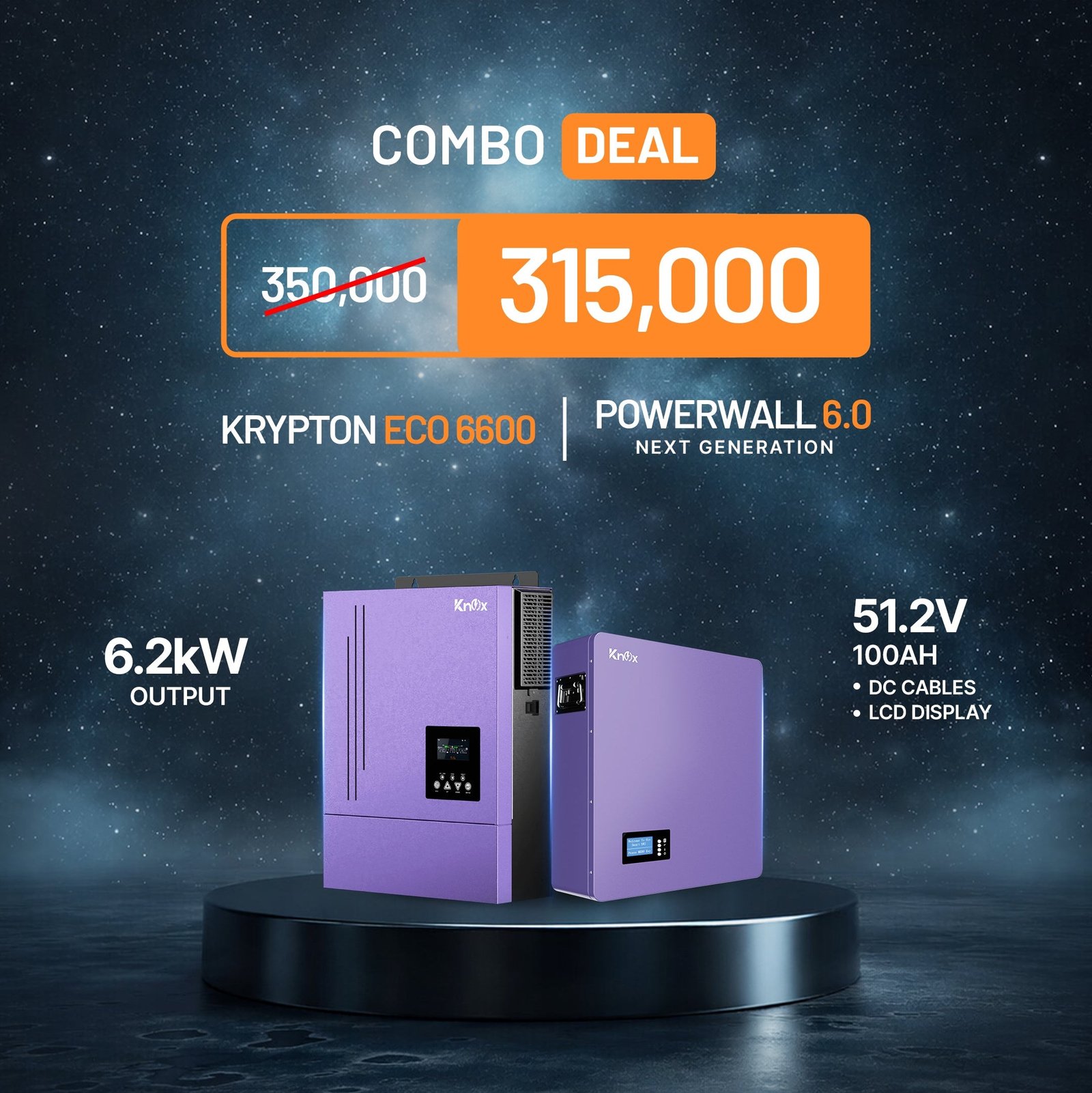 Power your home or business with the high-performance Knox Krypton Eco 6600 6.2KW Combo Deal, paired with the advanced Powerwall 6.0 (51.2V 100Ah) lithium battery. This hybrid solar energy system is engineered to deliver reliable backup power, maximize solar efficiency, and ensure uninterrupted energy supply during outages.